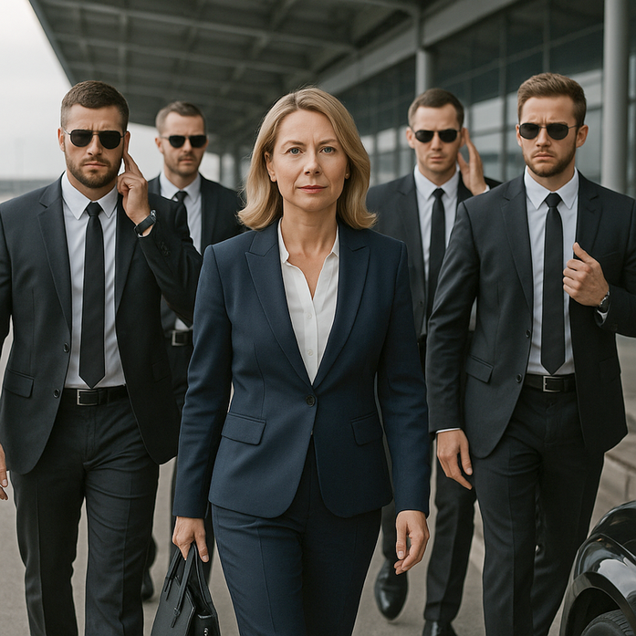 - Ensimmäinen ryhmä kulkee julkisilla paikoilla koko ajan presidentin ympärillä.