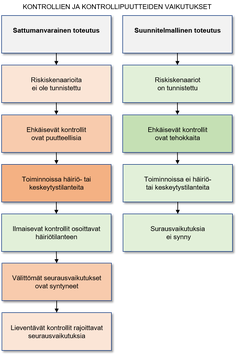 Kehittämisen lähtökohdatTurvallisuuden kehittämisen on perustuttava deduktiiviseen lähestymistapaan: yleisistä periaatteista siirrytään kohti toimialakohtaisia ja yksikkötasoisia ratkaisuja. Painopiste tulee olla ehkäisevissä kontrolleissa, koska ne kohtaavat ensimmäisenä epäsuotuisat tapahtumat. Tämä tukee liiketoiminnan jatkuvuutta ja vähentää häiriöistä aiheutuvia kustannuksia.Kustannustehokas lähestymistapaEnsivaiheessa tulisi toteuttaa yleisehkäiseviä kontrollitoimenpiteitä, joilla saadaan laaja joukko resursseja hallinnan piiriin. Tämän jälkeen arvioidaan, missä kohdin tarvitaan erityisehkäiseviä lisätoimia kriittisten resurssien turvaamiseksi.Yrityksen ei kuitenkaan tule nojautua pelkästään ehkäiseviin kontrollikeinoihin, sillä epäsuotuisat tapahtumat toteutuvat usein ennakoimattomasti. Tarvitaan myös ilmaisevia kontrollijärjestelmiä, jotka kykenevät hälyttämään poikkeamista nopeasti. Ilmaisevien kontrollien hyöty realisoituu vasta, kun niihin kyetään reagoimaan viiveettä ja tarkoituksenmukaisesti.Kun epäsuotuisat tapahtumat toteutuvat, niiden vaikutuksia voidaan vähentää lieventävillä kontrolleilla. Näiden suunnittelussa on tärkeää arvioida, voidaanko riskit siirtää vakuuttamalla vai tuleeko varautuminen toteuttaa muilla hallintamekanismeilla.Ideaalin kontrollikorin hyödyt