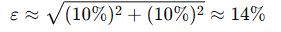 Otetaan arvioinnin kohteeksi 100 000 000 riskiarviota. Oletetaan, että riskiarviossa on keskimääräinen 10 % virhe todennäköisyydessä ja 10 % virhe vaikuttavuudessa, ja virheet ovat riippumattomia. Tällöin riskilaskelman virhe 𝜀 on noin: